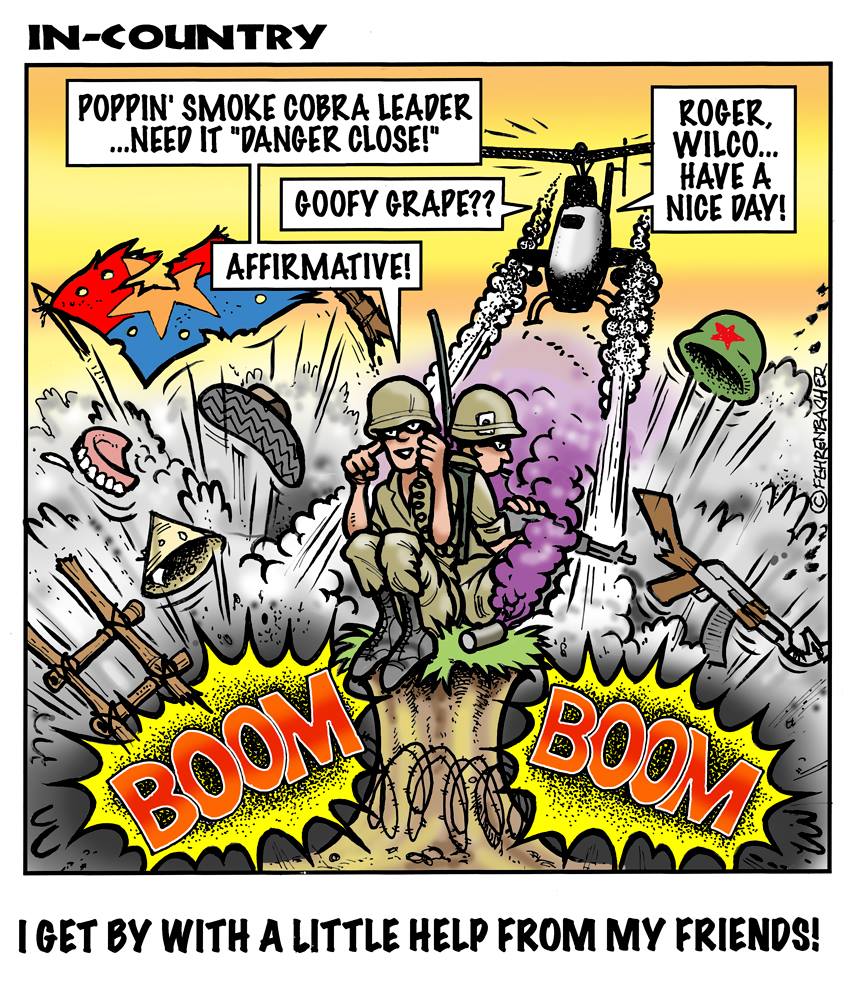 Phil enlisted in the Army in 1965 where he served for years in Vietnam. He became a graphic designer and has worked for the state of Oregon for 26 years. He retired in 2003 and started the Cartoon "In-Country". The cartoons reflect his experiences during his tour of duty in South Vietnam.