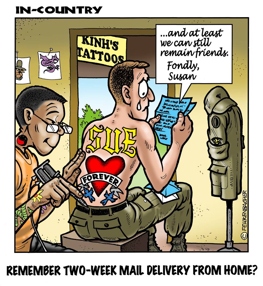 Phil enlisted in the Army in 1965 where he served for years in Vietnam.  He became a graphic designer and has worked for the state of Oregon for 26 years.  He retired in 2003 and started the Cartoon "In-Country".  The cartoons reflect his experiences during his tour of duty in South Vietnam.
