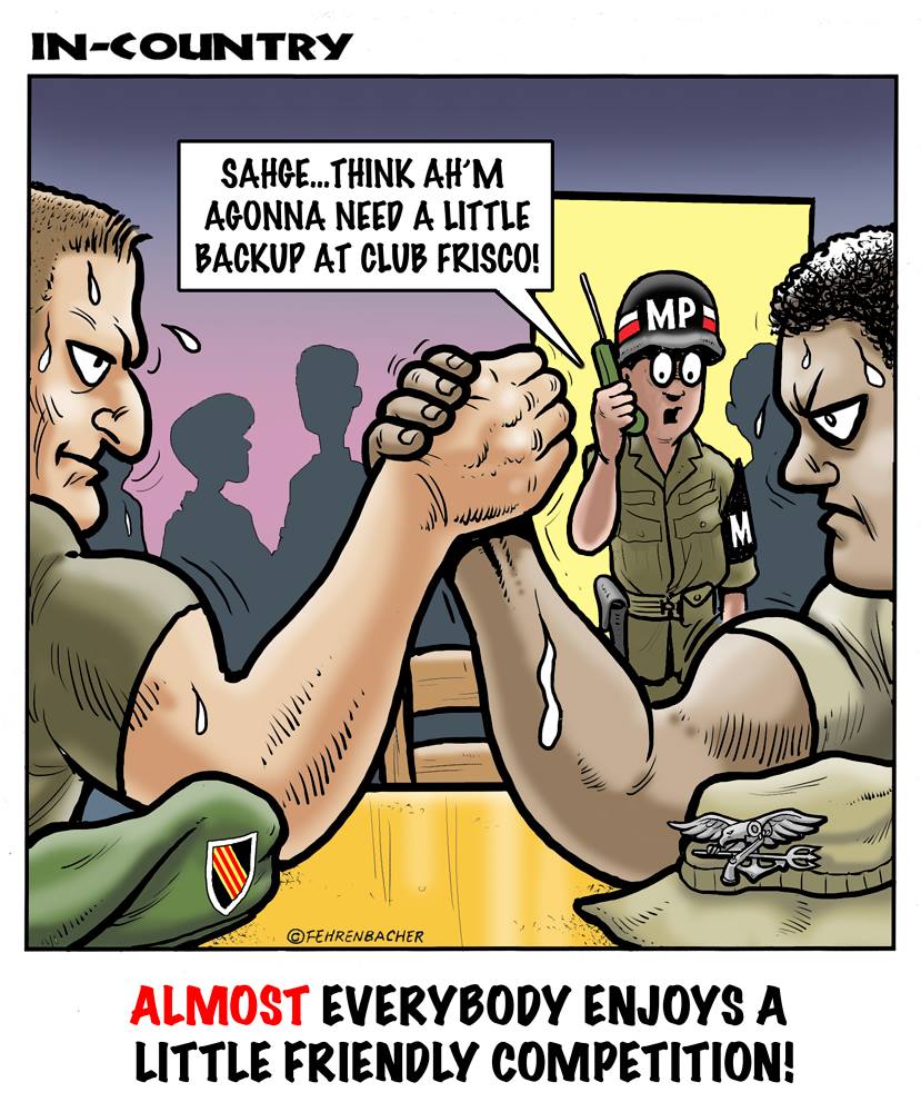 Phil enlisted in the Army in 1965 where he served for years in Vietnam. He became a graphic designer and has worked for the state of Oregon for 26 years. He retired in 2003 and started the Cartoon "In-Country". The cartoons reflect his experiences during his tour of duty in South Vietnam.